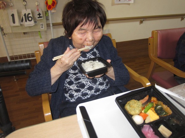 「すごく豪華なお弁当なのね」と仰られ、ご利用者様の中には目を輝か