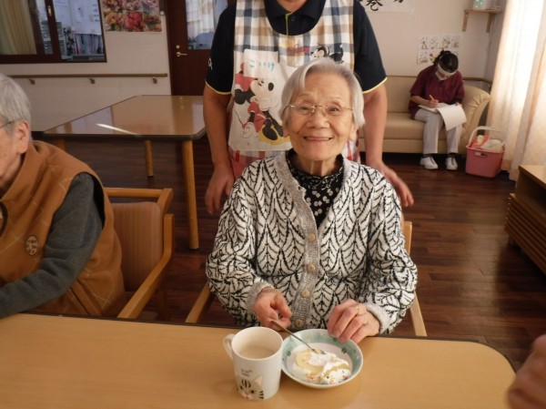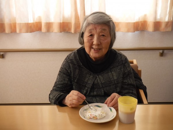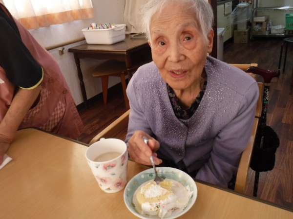 今日は2階の○○さんのお誕生日会の様子をお送りいたします。