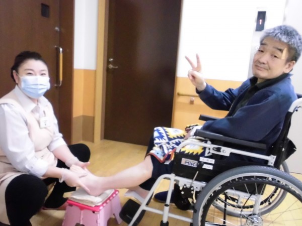 シニアセラピーは、「ご利用者様に毎日をいきいきと過ごしていただきたい」という願いを込めてスタートした、オリジナルの癒しのサービスです。高齢者向けにアレンジした「リンパドレナージュ」により、足や顔に心地よい刺激を与え、『心と身体の両面』の健康を目的としています。