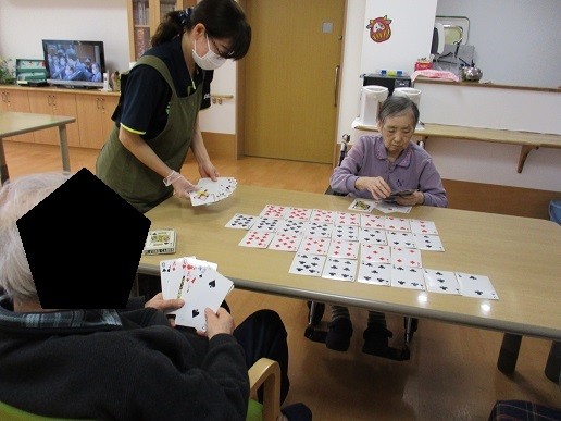 スタッフと入居者様大きいトランプで対戦!!
