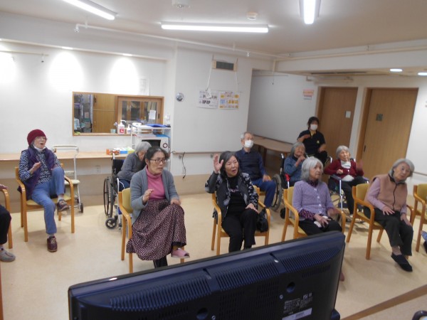 リズム良く、足を上げたり、腕を伸ばしたり!