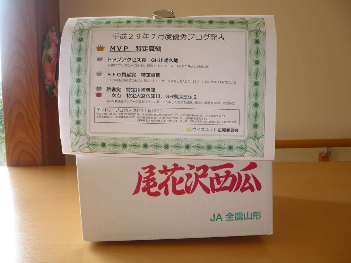 皆様方のご購読のおかげで、ウイズネット全事業所から、ブログでの大賞に選ばれました!!(^_^)v