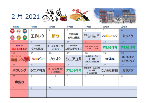 バレンタインデーの調理レクは何を作るんでしょう?お菓子でしょうか?楽しみです(^^)