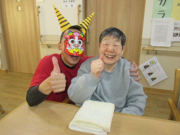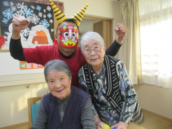 ご入居者様に現れた赤鬼めがけて投げていただきました。