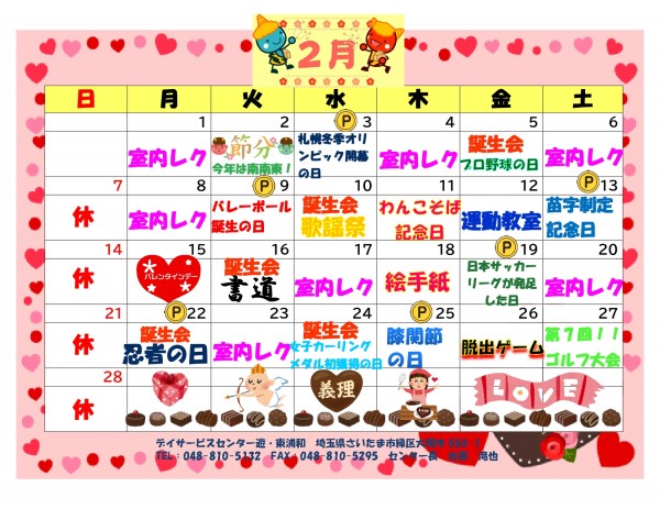 15日にはバレンタインのレクリエーションが企画されていますよ!!