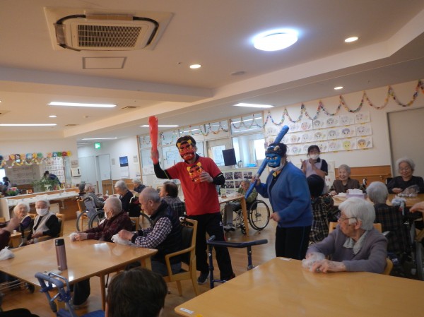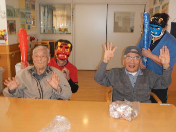 この後もご利用者様の優勢は続き、鬼も降参して、みなさんと仲良く記念撮影を行ないました。