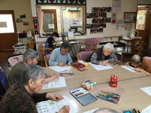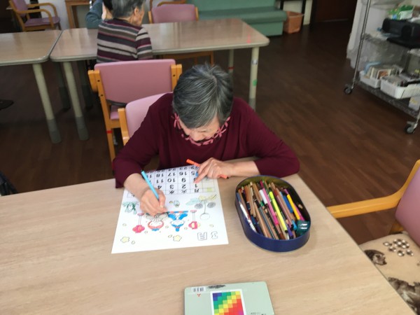 もうすぐ3月、今日は1階も2階もレクリエーションで3月のカレンダー作りをしました。