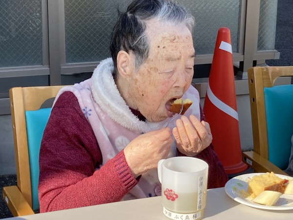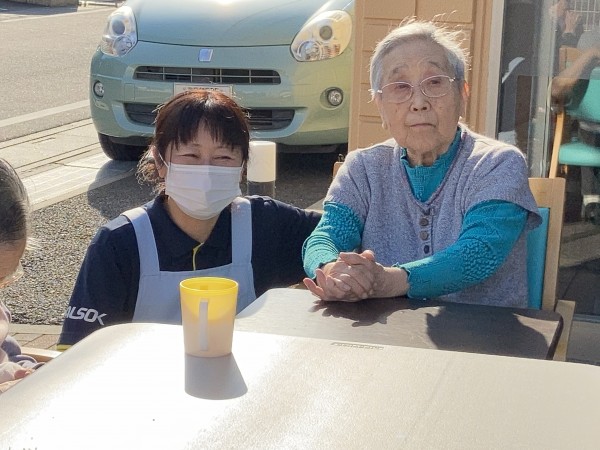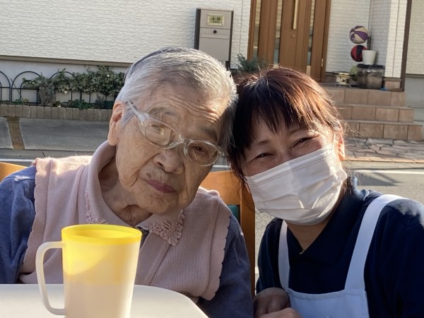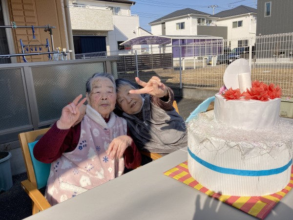 こんにちは!グループホームみんなの家三郷2です。ブログをご覧頂きありがとうございます。先日2月生まれの利用者様のお誕生日会を開催いたしました。天気も良くとても暖かかったのでお外で行いました~!