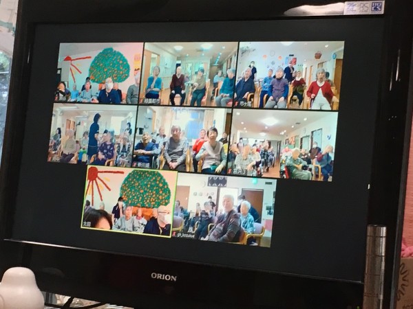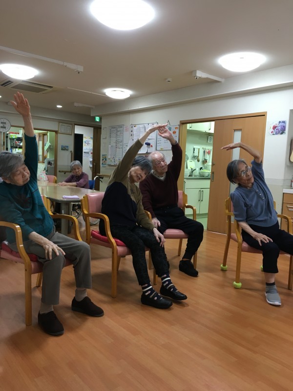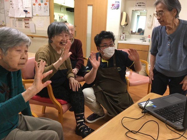 体操が終わって、他のグループホームの皆様とおしゃべり。
