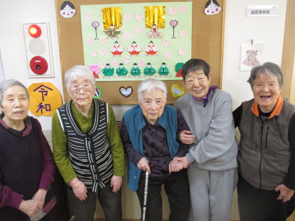 2階のご入居者様の壁飾りの前で仲良くポーズ!
