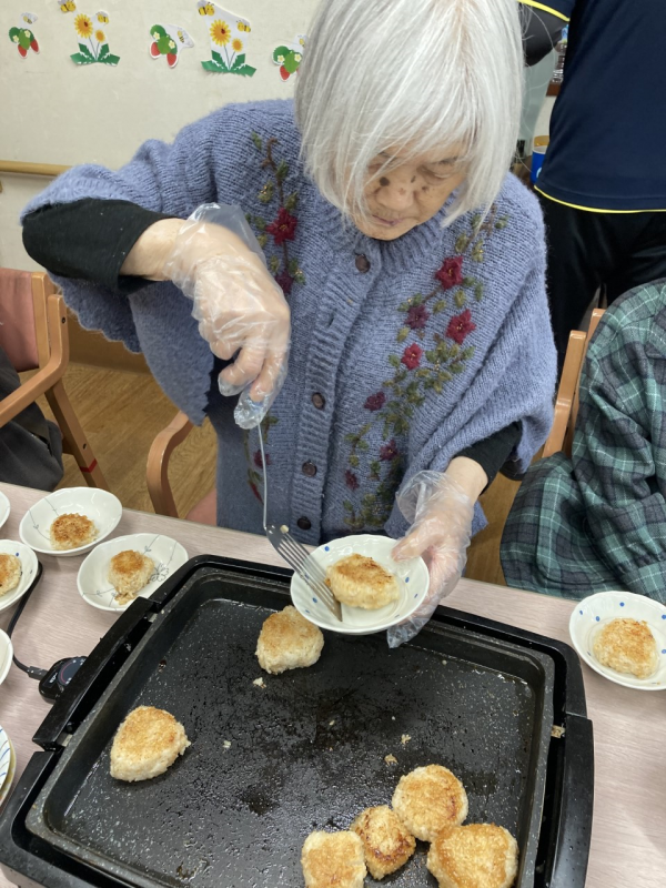 今日の手作りおやつは、焼きおにぎりですよ( ´∀` )P