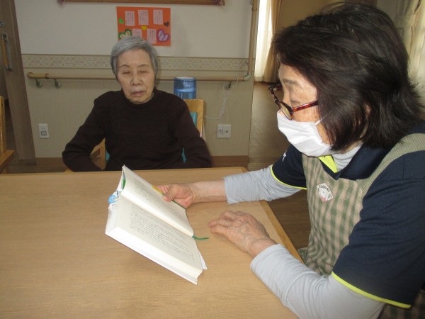 レクリエーションで行った読み聞かせの様子をお伝えします。