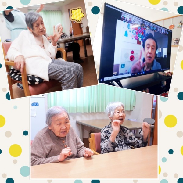 初めてのリモート体操で、最初はちょっと戸惑い気味だった利用者様も、体操が終わる頃には皆さん笑顔♪