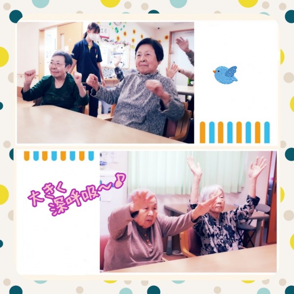 しっかりとお口と手足を動かした後は、大きく深呼吸して呼吸を整えます。