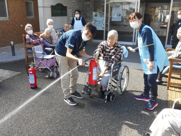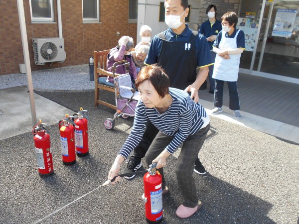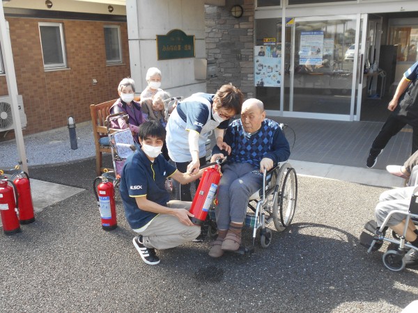 入居者様と避難経路の確認をし、消火器の使い方を試しました。