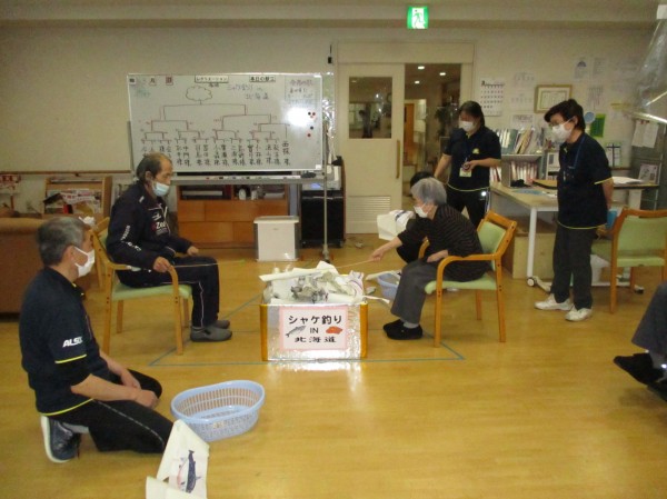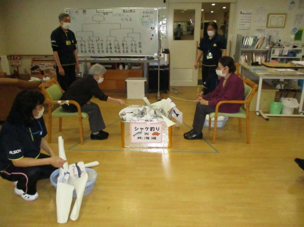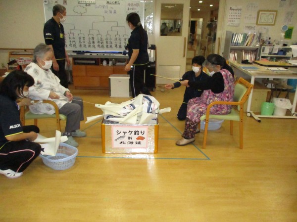 最初の内は皆さん今一つタイミングがずれサケが、飛び跳ねて逃げていきました。