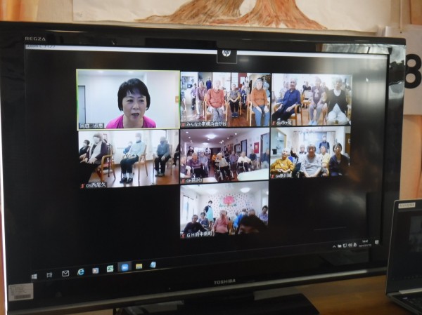 普段はNHKのテレビ体操とか、DVDを見ながら体操していますが、この日は通信で7か所と繋がって行います。