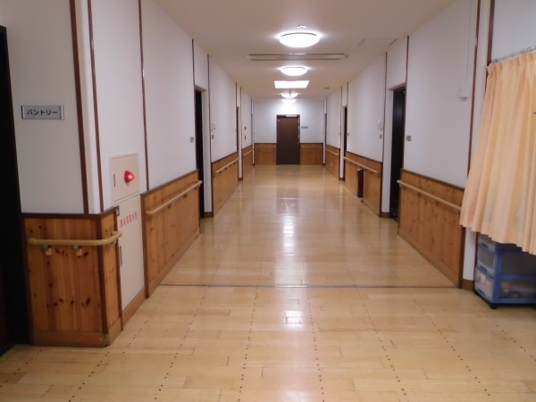 まず、エレベーターで2階に上がられて左側は各利用者様の居室があり、日中では長い廊下で歩行訓練を行っております☆