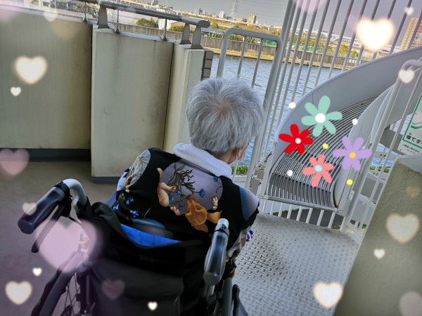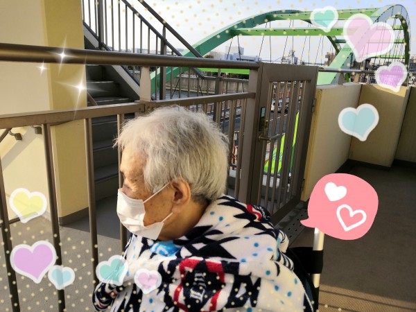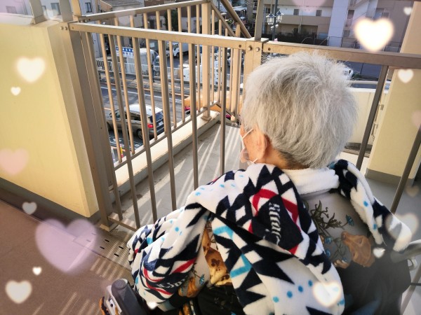 ベランダを御利用者様と一緒に