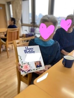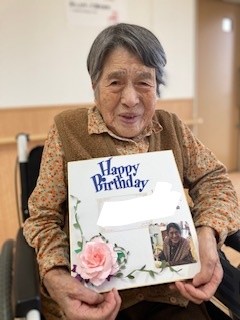 職員からの手作りバースデーカードは3階はピンクのバラです。
