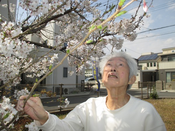 皆様、桜の花を見て「きれいだね」、「咲いてきたね」と触ったり、見とれていました。