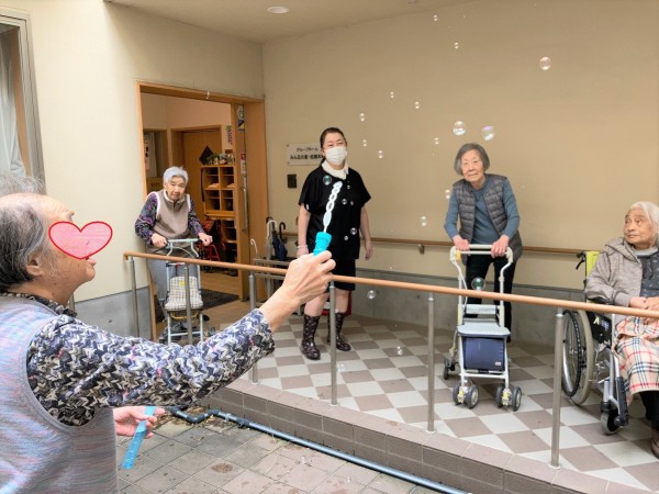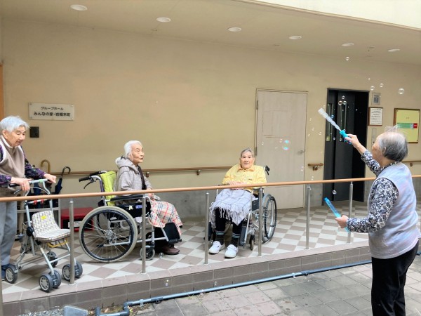 日向ぼっこならぬシャボン玉を飛ばして皆様ニコニコ見られていました(^▽^)/