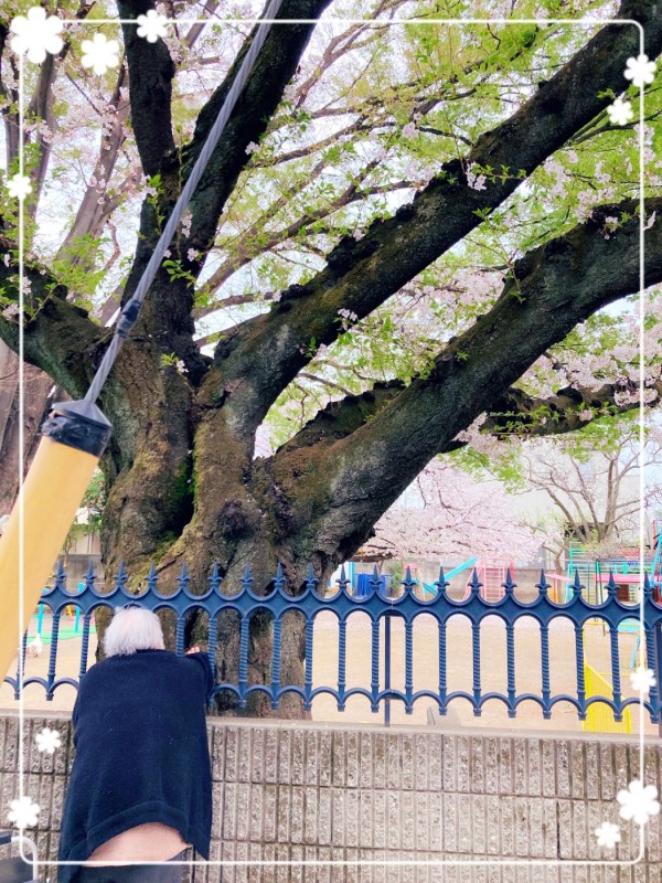 お天気がいい日に、近くの幼稚園の園庭の桜を眺めに行きましたぁ~!