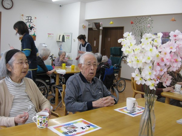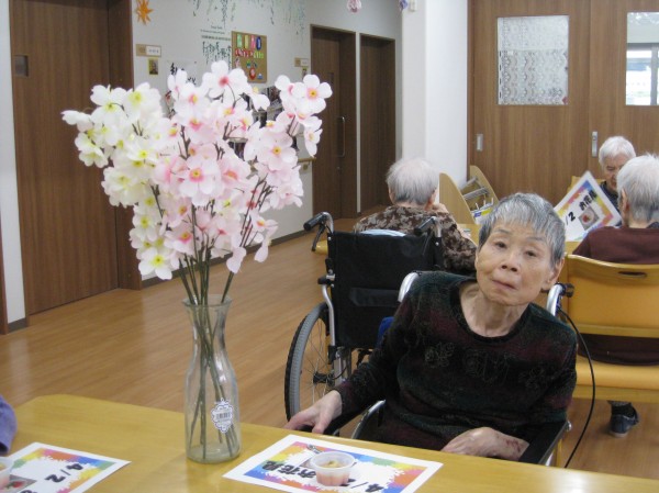 こんにちは!グループホームみんなの家・あきがせの介護ブログです。よろしくお願いいたします。桜も満開となりお花見日和ですが、コロナ過なのでホール内にて花瓶に飾った桜を見ながらのお花見をしました。綺麗ね!!お水が入っていないけど・・・ 本物ではないのでお水は不要なのです。あ~~!!そういう事ですか?でも、綺麗よ!!と心も和みました。