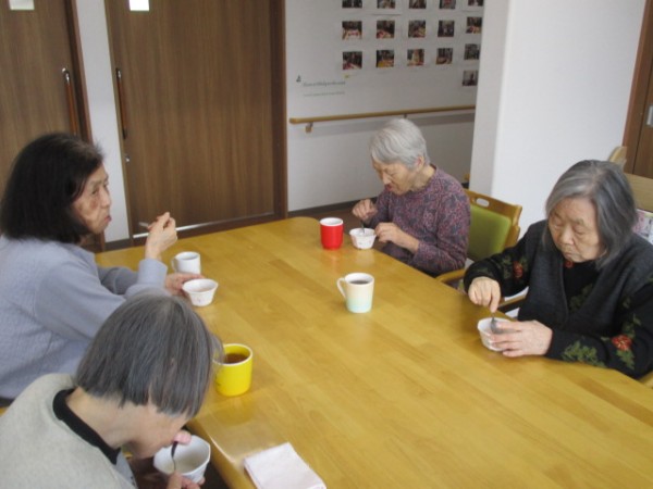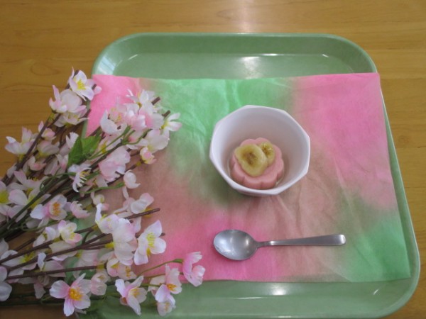 桜の歌を合唱しながら桜風ゼリーを召し上がられました。美味しい、もっと食べたいなあ・・・!!また、今度作りましょうね。宜しくお願いします。楽しまれたひと時でした。