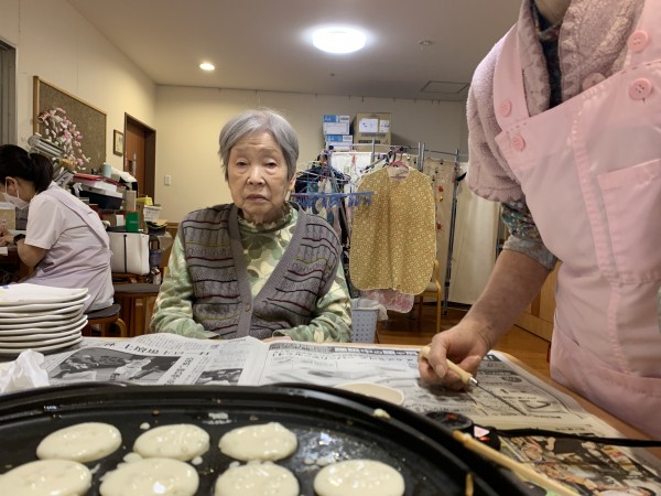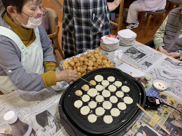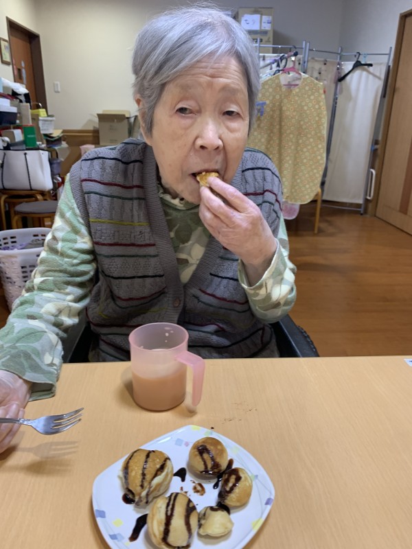 先日手作りおやつとして、たこ焼き?ではなく、たこ焼き器でホットケーキを焼きました(^O^)