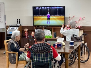 1階の体操は、いしだあゆみの「ブルー ライト ヨコハマ」の歌にのって身体を動かしました。