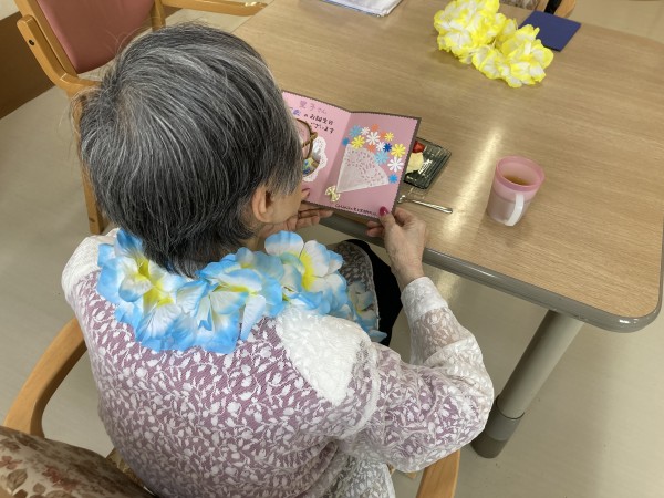 職員手作りのバースディカードと