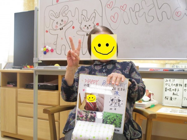 こちらのフロアでも大正琴の伴奏でハッピーバースデーの合唱、そしてプレゼント贈呈が行われました。