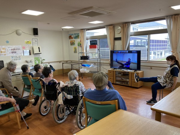 こんにちは!グループホームみんなの家・三郷2です。ブログをご覧頂きありがとうございます。先日リモートでの運動教室(NõAエクササイズ)がありました。みんなテレビの前に集合!