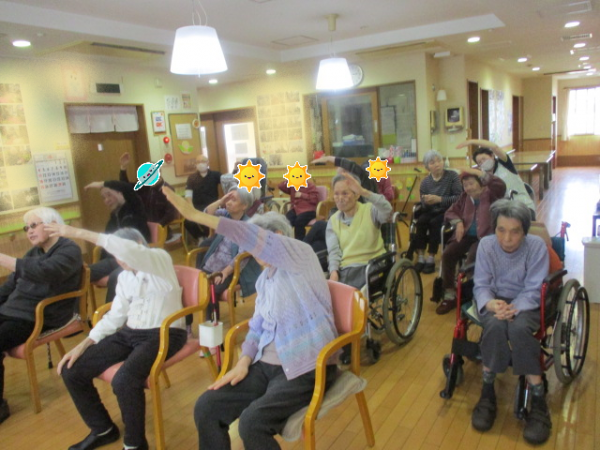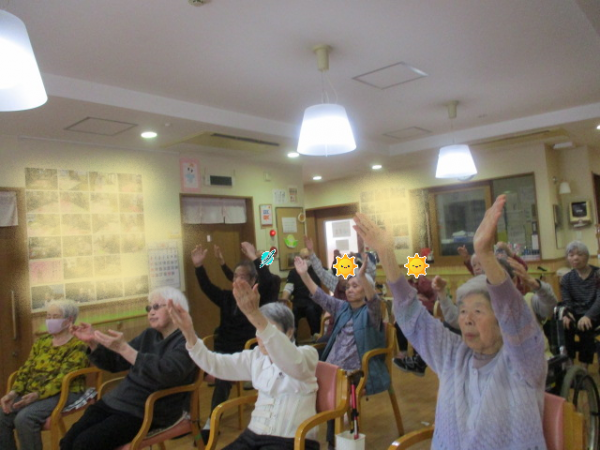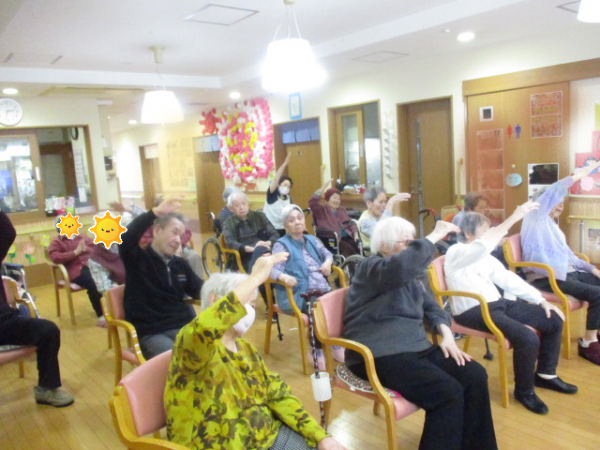 全、8事業所と合同にて体操レクを開催、みんなで思いっきり身体を動かしました(^_-)-☆