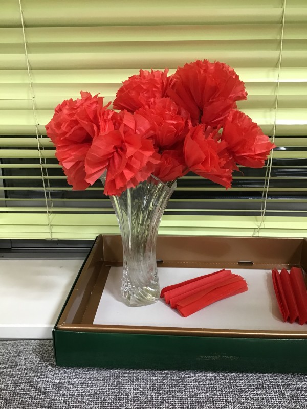 5月に向けた作品作りでカーネーションをお花紙で作成する事にしました!