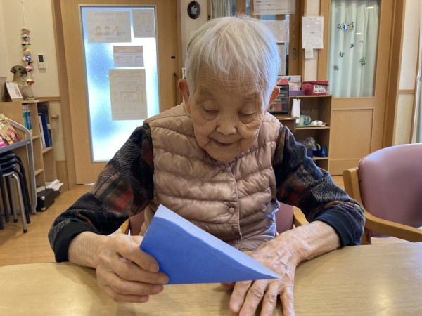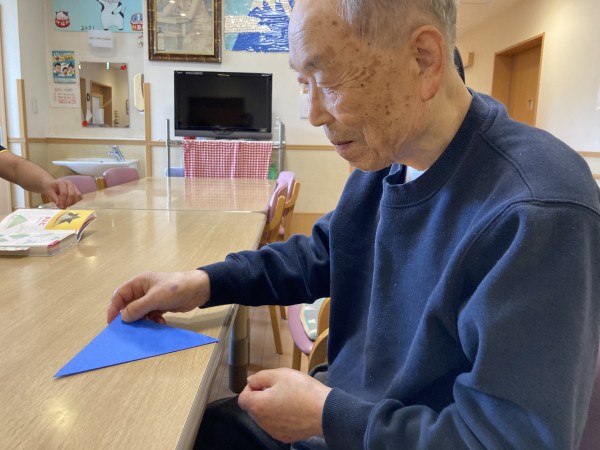 早いもので4月も後半ですね。今日はスタッフと一緒に折紙でカブトを作りました。