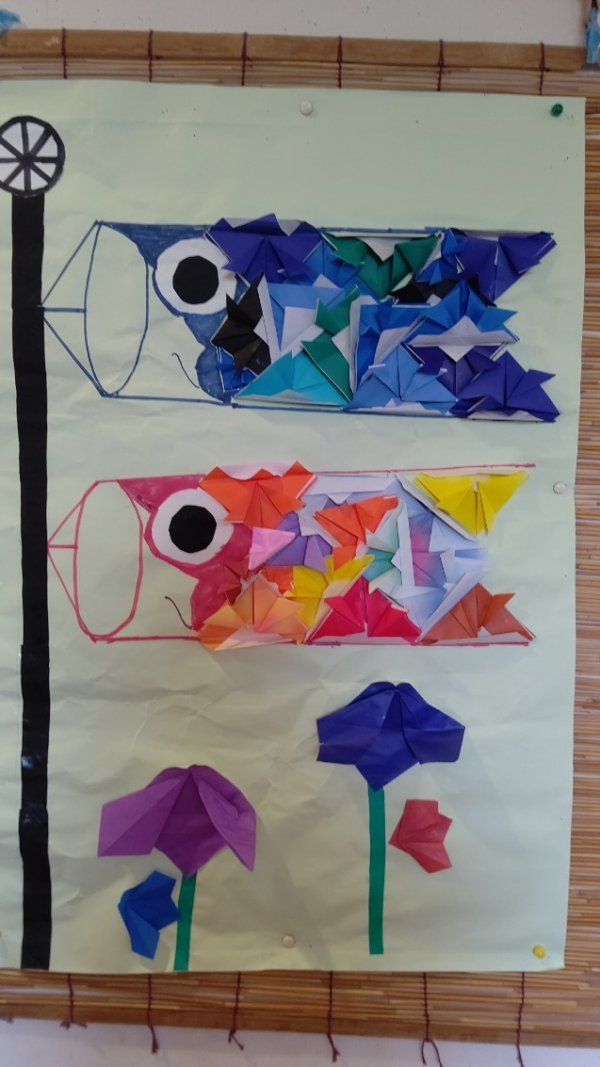 たくさんカブトを作ったら、カブトを鱗にして鯉のぼりを作ります。