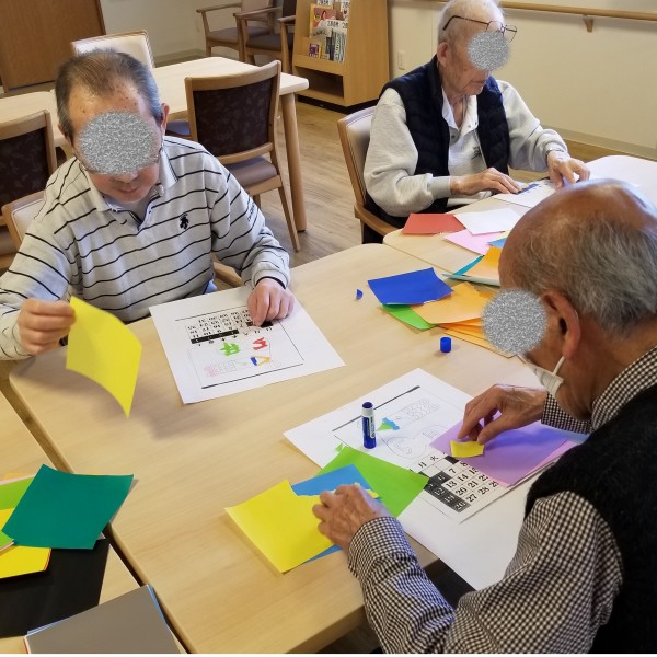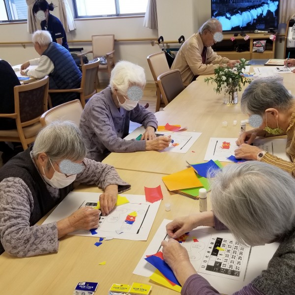 皆さん、一所懸命、鯉のぼりのイラストに貼り絵をされていましたよ
