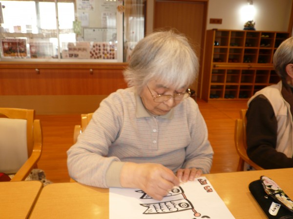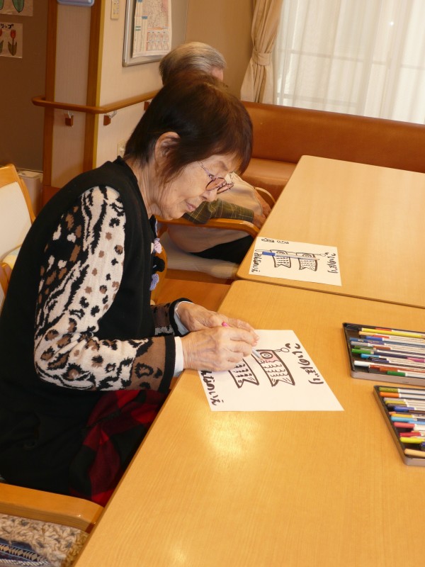 5月にむけて、二階は鯉のぼりの塗り絵を行いました。