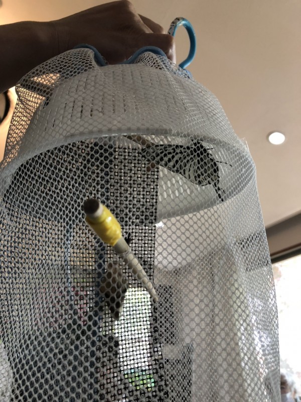 そして洗濯ネットにキッチン用のザルをつけ