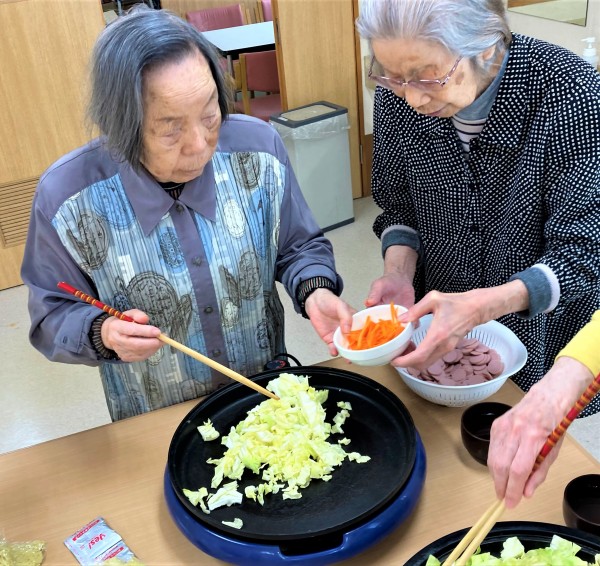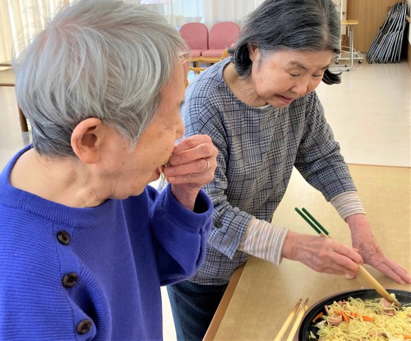 入居者様5名とスタッフ2名が協力して作った渾身のやきそばです(*^。^*)