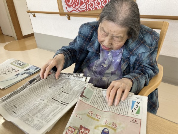 新聞を折る手伝いをされたり・・・