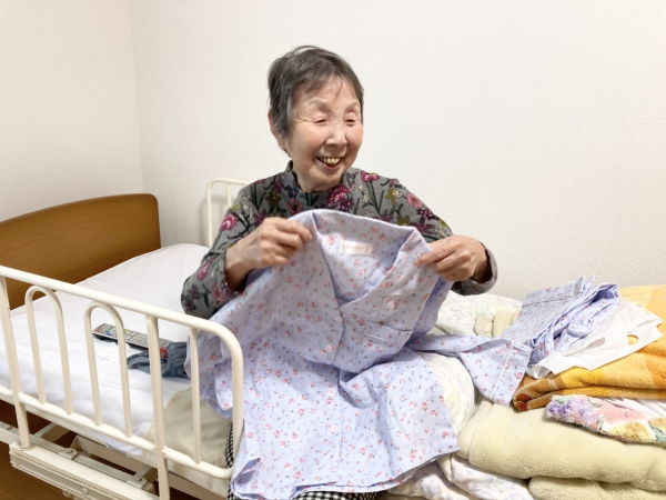 『素敵なデザインのパジャマね』と職員と記念にパシャリ(^^♪