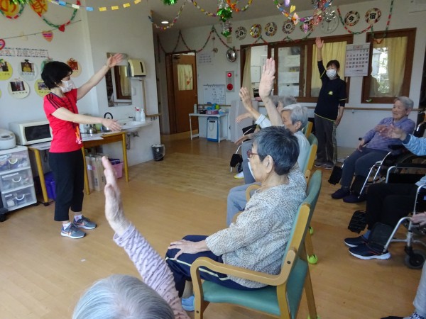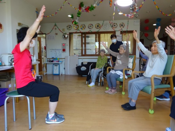 体操は単に身体を動かすだけでなく、1階と2階の交流の場でもあります。