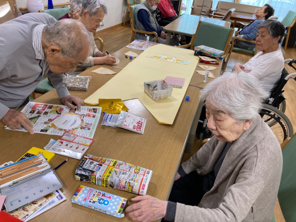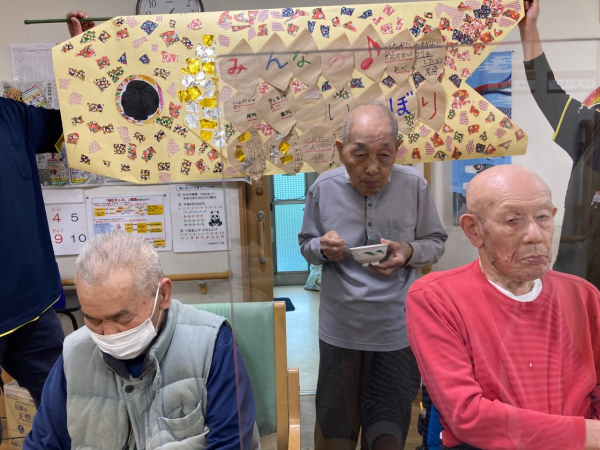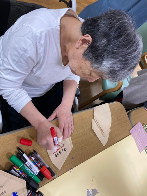 実際の製作現場では、おおそうか!そうか!と笑顔で見守って下さったAさん、積極的に参加していただいたIさん、そしてチラチラと気にしていただいたはにかみ屋のKさん、と男性のみなさんも、メンバーの一員として製作にたずさわっていただきました。