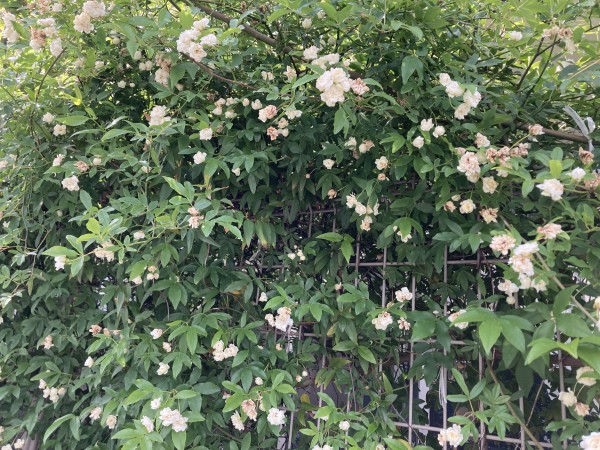 3年くらい前に、バラ園で購入した、1本のモッコウバラの苗木から、こんなに花が咲きました\( ゚Д゚)/