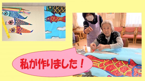 5月最初のイベントはこどもの日ですが、東フロアーではさっそくS様が手作り鯉のぼりを作られていました!