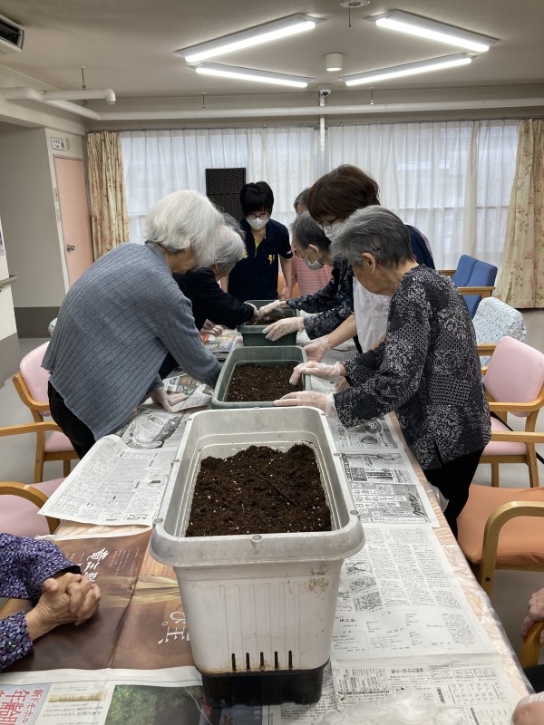 この日はみんなでヒマワリとマリーゴールドの種まきを行いました!