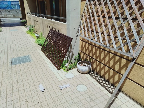 通路のラティスも明るくなり、植物の緑とよく合います。残念ながら老朽化が激しいラティスが3枚あり、怪我の原因となるため、この日をもって役目を全うしてもらうことにしました。今まで本当にありがとうございました。